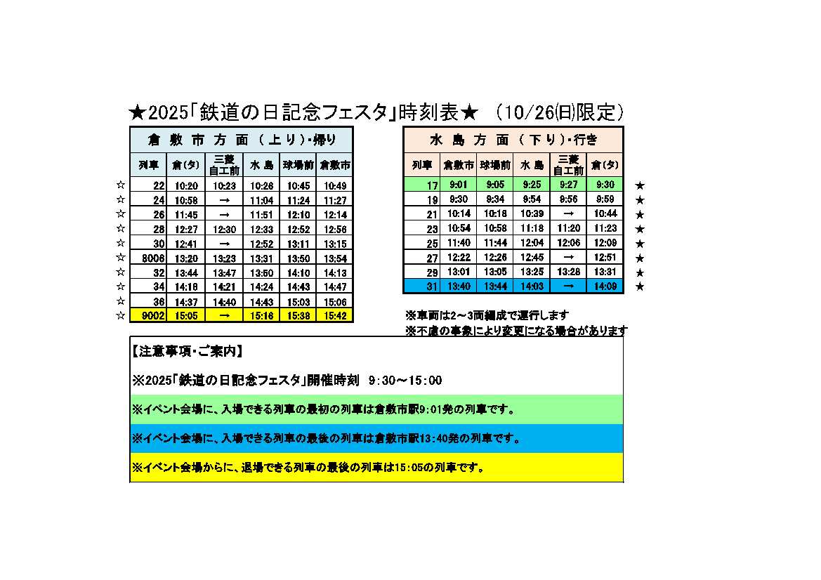 今年も水島臨海鉄道鉄道をより知っていただくため、会場には列車にご乗車いただいて入場になります。