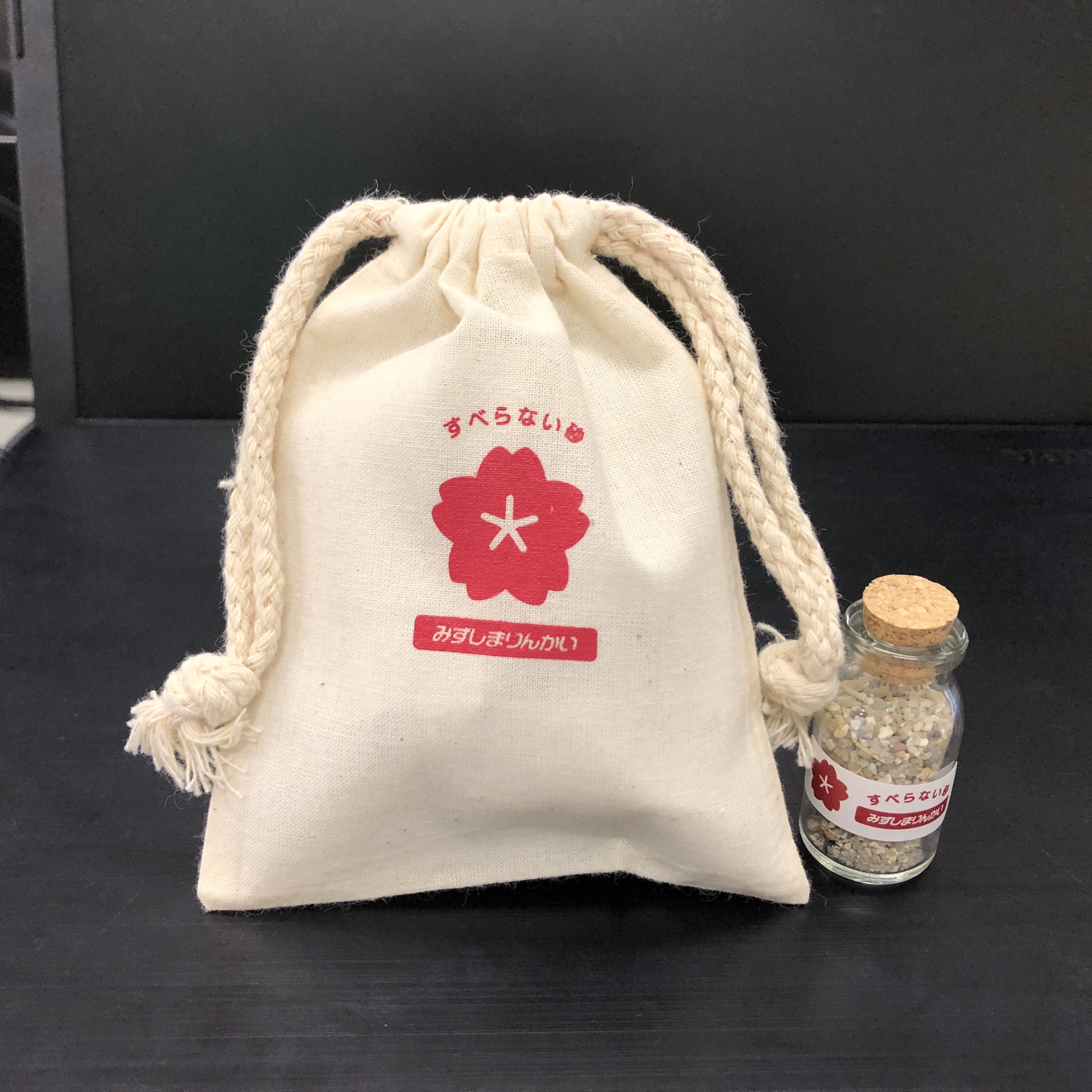 【商品形態】 すべらない砂入りコルク蓋付瓶 + オリジナル巾着