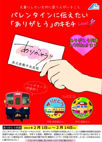 【2/1~2/14】倉敷中央高校コラボ「ありがとう列車」運行します