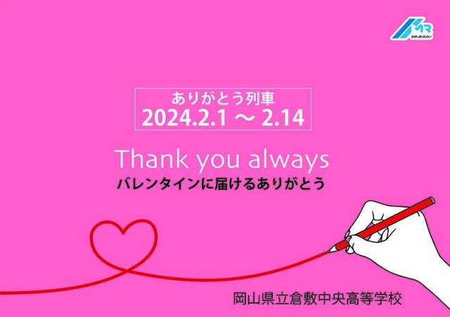 岡山県立倉敷中央高校の生徒の皆さまと一緒に企画し、大好評を頂いております「ありがとう列車」を運行いたします。
