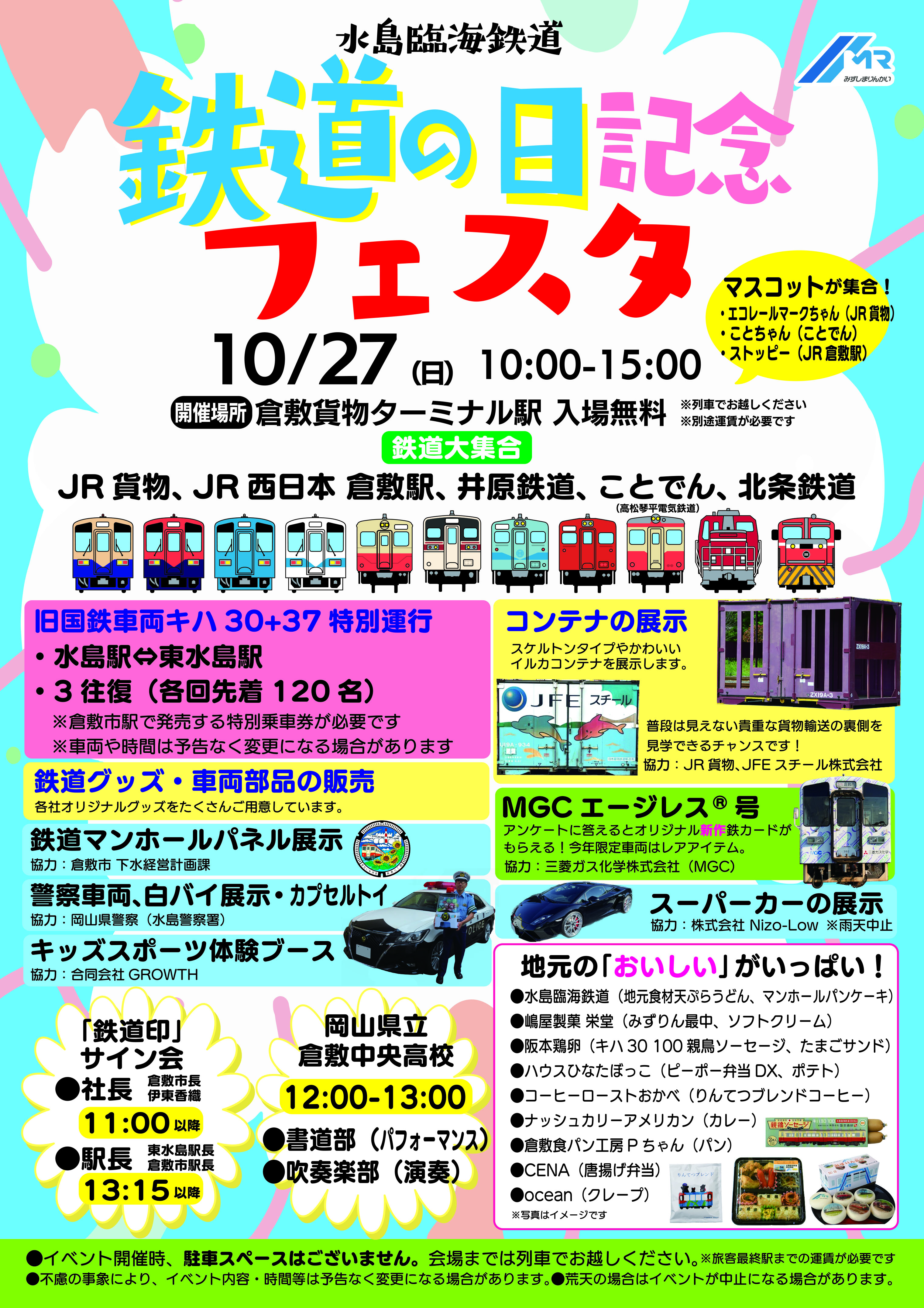 今年も鉄道ファンの心に響く、水島臨海鉄道の鉄道の日記念フェスタを開催いたします。