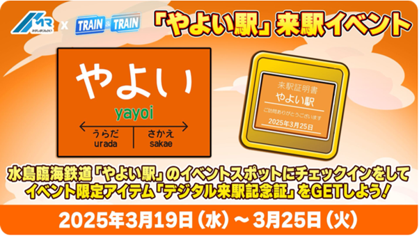 【TRAIN✖TRAINコラボ】「やよい駅」デジタル来駅証明書の配布について
