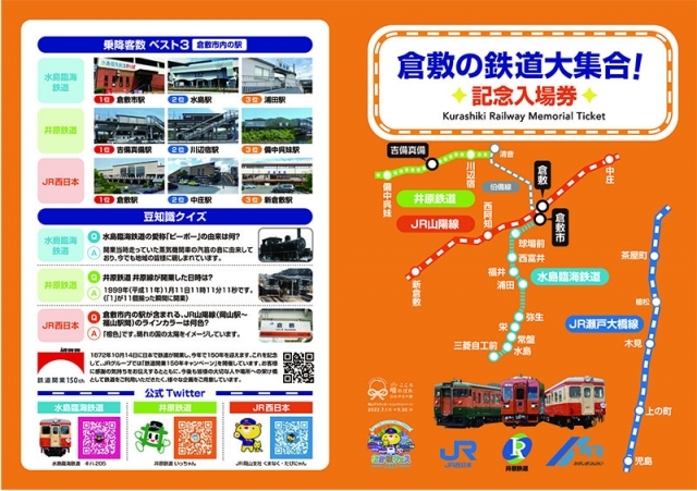 日本の鉄道開業150周年および岡山デスティネーションキャンペーンを記念して、岡山有数の観光名所を擁する倉敷市内を運行する鉄道会社3社で記念入場券を発売します。