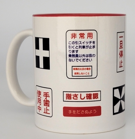 鉄道の安全運行に欠かすことのできない鉄道標識で鉄分がたっぷりとれるマグカップ。